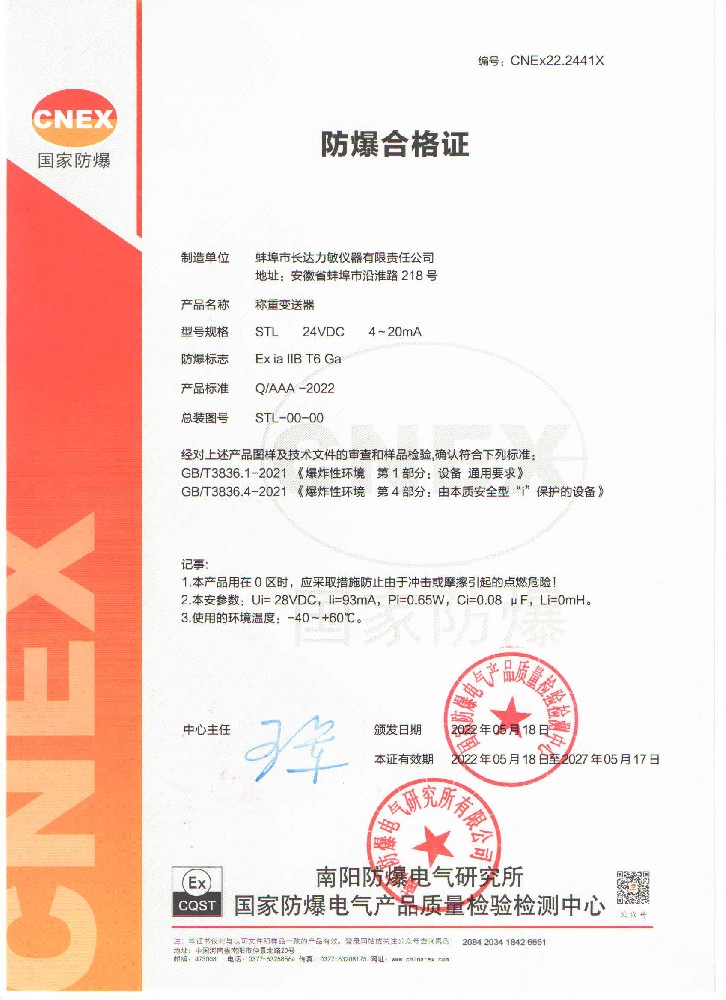 稱重變送器-防爆合格證