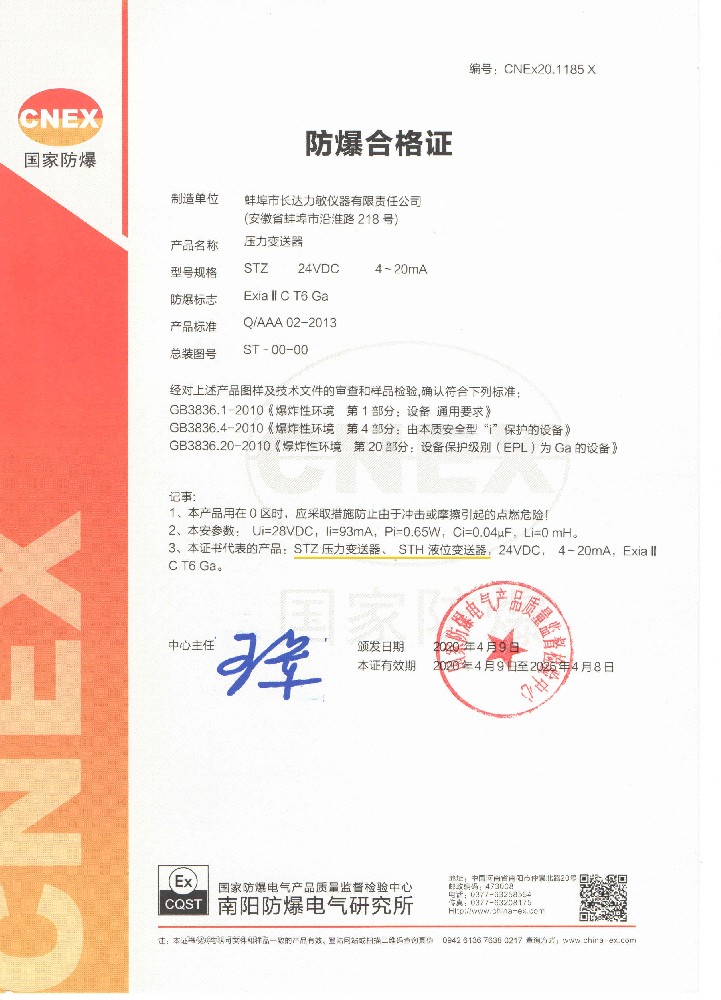 壓力變送器-防爆合格證